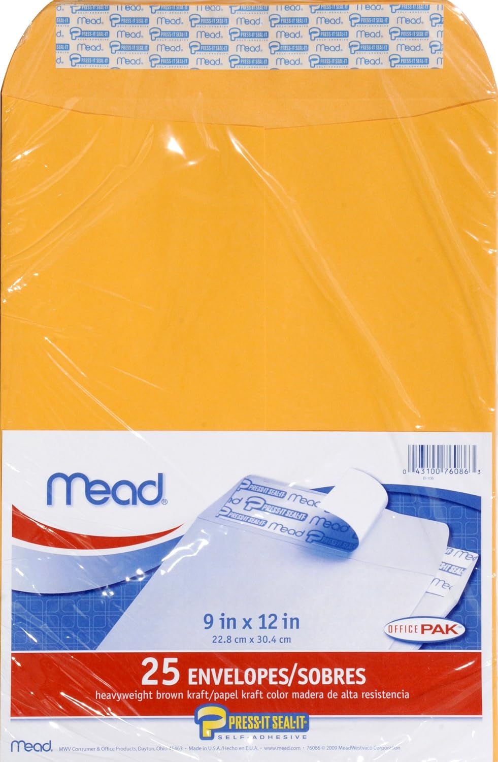Mead Press-It Seal-It大信封(自帶密封條)9 x 12 In 25個裝