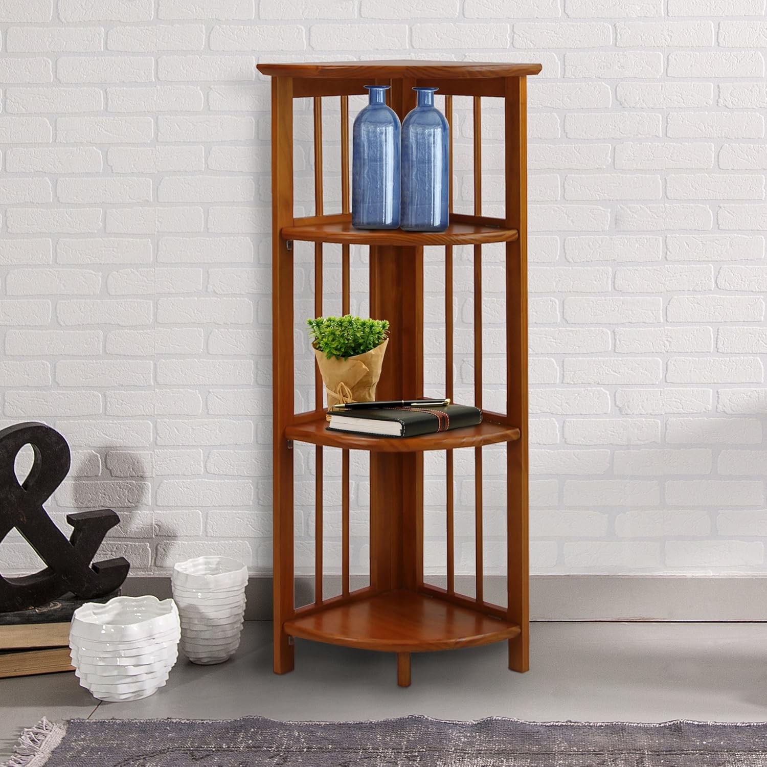 角落收納架,可以利用起牆角的空間收納物品,很實用,而且是實木製成,成品尺寸約38英寸高*11.2*11.2英寸寬。 不需要組裝哦,不用的時候還可以折疊起來。